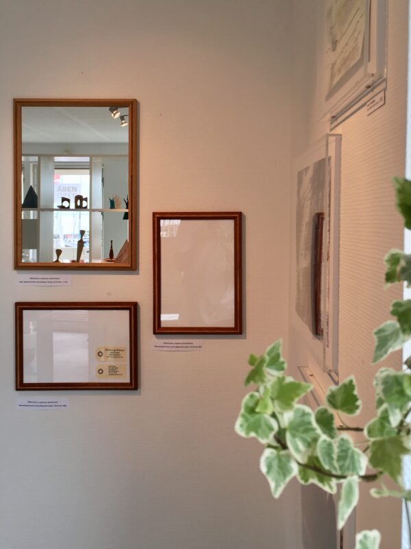 Et drejet bæger af kirsebærtræ faldt jeg for. Jeg holder meget af formen og den lækre finish. Nielsen og Holstein har også fremstillet en ramme i deres egen rammeprofil på specialmål til en akvarel, der har særlig betydning for mig. Kunstværket er nu kommet til sin ret i en smuk ramme, der passer til dets udtryk."