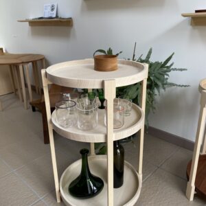 En kunde efterspurgte et bakkebord til vores OsTo bakker. Dette ønske tog vil til os, så nu har vi fremstilet et let og elegant bord der passer til to bakker. Begge bakker ligger løst på bordet. Nederste bakke må vinkles for at komme fri, men øverste bakke er fri til at løfte op og bære ud til køkkenet eller hen til barskabet, hvor det ønskede sættes på og bakken bæres tilbage til bordet.
