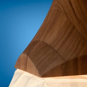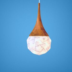 Dråben består af 25 moduler og kronen er som standard drejet af FSC-certificeret eller lokalt valnød hos Nielsen og Holsteins møbelsnedkeri. Træsorten kan blive din foretrukne træsort eller det kan bejdses, så den matcher dine møbler eller farven på væggene og går i dialog med din øvrige indretning.