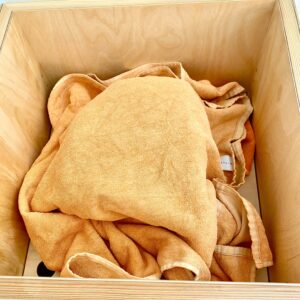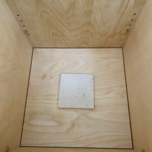 Høkassen er samtidig en siddeplads, da den har stolehøjde (45 cm). Kassens ydermål er 50 x 50 cm. Høkassen kan også placeres på en udtrækshylde i et 60cm. bredt køkkenskab.