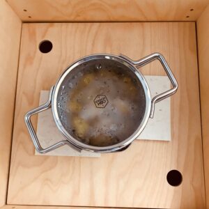 Grøntsager, ris og kartofler mv. kan koges færdige i høkassen – så sparer du på energiforbruget.