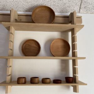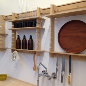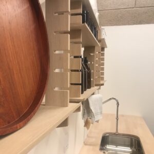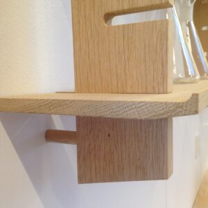 Det fleksible hyldesystem, af dansk egetræ, er tænkt til køkkener uden overskabe, men kan også ophænges i entreen, stuen eller hvor du har brug for det.