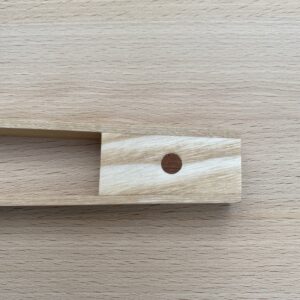 I madtangen er der boret et stykke metal i gribefeltet. Madtangen kan dermed ophænges på vores knivmagnet.