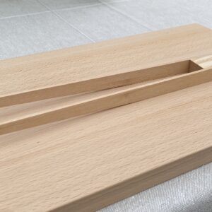 Madtangen er fremstillet af dansk asketræ. Som en ekstra finesse er tangens ben affaset på den ene side, sådan at de ikke rører bordpladen når man lægger den fra sig. Der er anvendt en fødevareegnet lim til limning af tangens ben på gribefeltet. Asketræet er omhyggelig pudset og behandlet med en fødevareegnet olie. Vaskes af under vandhanen og tørres af.