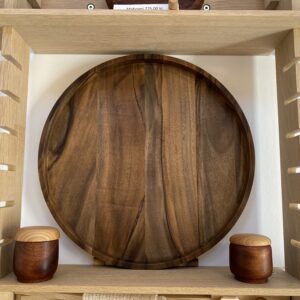 Den fremtræder eksklusiv og elegant med sin enkle form. Her får træets egen struktur og farve lov til at tale. Bakken er omhyggeligt pudset og behandlingen vil afhænge af træsorten. Vi farver af og til en bakke hvis vi vurderer at det giver noget ekstra til netop denne bakke.