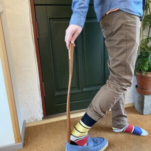 Hvis udformning, udseende og materiale betyder noget for dig, så kig nærmere på billederne her. Vi har fremstillet et elegant og praktisk skohorn og medfølgende ophæng til væg. Så er skohornet altid på plads og lige til at tage fra holderen. Det er stilrent og enkelt og passer godt ind i de fleste indretninger. Det er praktisk at have hængende i entreen, walk-in closet eller en baggang.